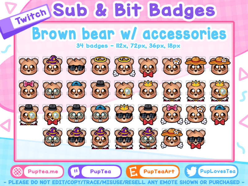 34 Bear Sub and Bit Badges Pack for Twitch, Kick, and Discord